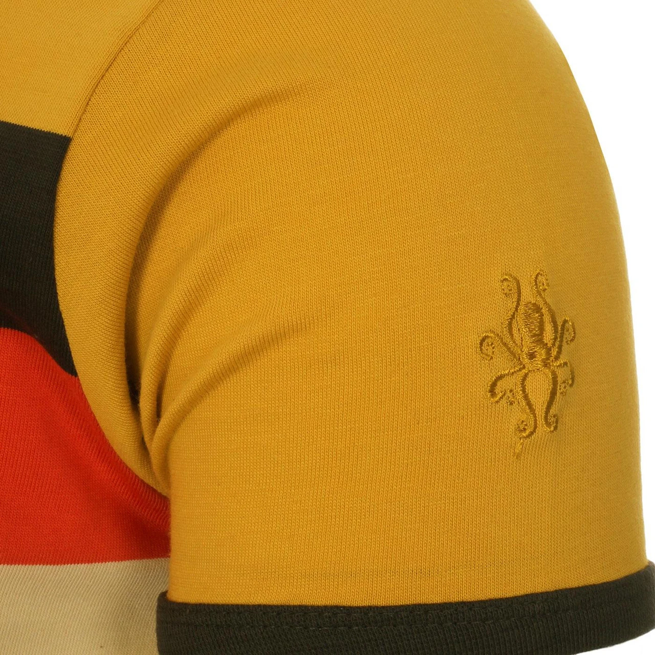 - Madcap England Hunter men’s retro 70s chest stripe tee.